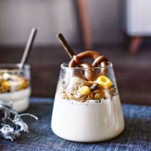 早上起来酸奶也做好了,放入自己喜欢的各种麦片饼干果酱等就可以食用了,如果想酸奶更酸,发酵好的酸奶可以先放冰箱冷藏一天。