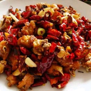 第六步:锅中加入少量油,下入葱姜蒜,煸炒出香味,在下入豆瓣酱,干辣椒,花椒,线线辣椒,煸炒出红油,加入少量水,在依次下入料酒1勺,生抽2勺,辣鲜露1勺,胡椒粉1勺,糖2勺,炒制均匀,迅速下入炸好的鸡块,翻炒均匀,最后加入鸡精1勺,香油1勺,熟芝麻适量,即可出锅!