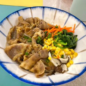 洋葱切丝,胡萝卜擦丝,菠菜焯水,香菇切片焯水,玉米粒焯水,肥牛焯水去浮末。