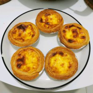 将蛋液倒入蛋挞皮中,约八分满,将芝士片掰碎放入蛋挞液中(也可以放蓝莓、巧克力等)。放入烤箱中层,上下火200度烤20~25分钟。(我烤了25分钟,有三个稍微有点焦,所以建议烤到第20分钟时看一下烤箱)。