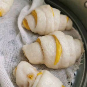 铁杆山药蒸熟,打成泥,加入白糖,酵母粉3克,少量牛奶,适量面粉,揉成面团。