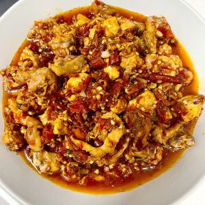 首先干辣椒煮熟,每个辣椒都是饱和状态