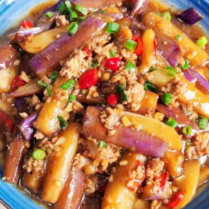 倒入蒜末,小米椒爆香,再加入肉沫翻炒几下