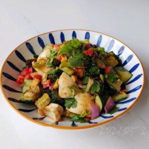 努力拌/抓匀揪块儿尝尝缺啥补啥没问题了怼香菜,不着急吃的话可以盖起来搁冷藏镇着先