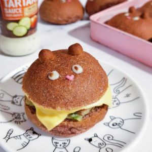 面包胚对半切开,抹上色拉,放上一片番茄,再放一块芝士片,可以叮10秒让芝士片自然垂下。(蔬菜部分可以看自己喜好哦,生菜、黄瓜都是可以哒)