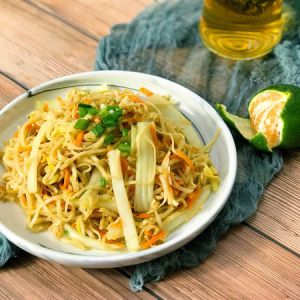 鸡蛋挂面煮熟,倒入热锅热油炒出面条本身的香味。面条吸收油比较多,少了会粘锅算正常的。炒香捞起备用。