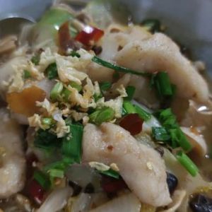 锅里下三勺油,大火热油后转中火,放入蒜头、葱白、蒜白,焦黄后倒入两勺郫县豆瓣酱和两把花椒,炒至均匀受热后,加入白菜、香菇炒至绵软,捞出备用,国内加水,加两勺盐、一勺鸡精,再分别过水汌金针菇、黄豆芽、鱼片,注意鱼片40秒就够了,否则太老。