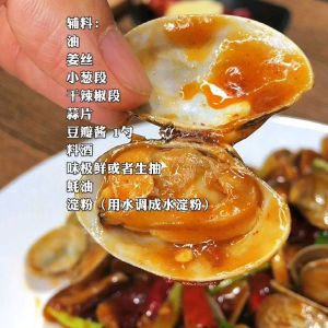 放入花蛤放入生抽 耗油葱段蛋炒裹上料汁