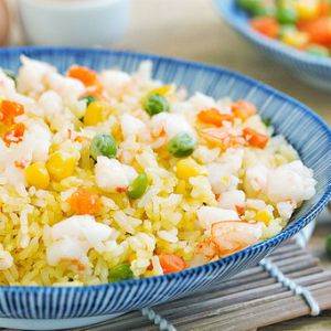 一碗上好的炒饭讲究“金包银”,确保每一粒饭上都包有蛋液,这样炒出来的米饭才够香够好看。至于大米,最好用较长细的籼米,比如泰国香米。