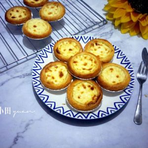 烤箱选择蛋挞模式预热,一般预热时间为10分钟左右,这个时间挞液差不多就可以制作完成倒入挞皮送入烤箱了