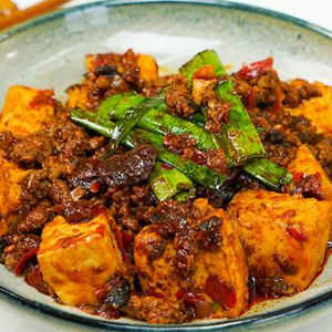 再加入生抽1勺、盐少许、白糖2勺、清水适量,放入豆腐轻推拌匀,煮至吸饱汤汁