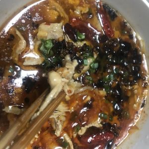 铺上干辣椒花椒葱花