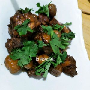 板栗盛出,锅里放入鸡腿,冰糖料酒