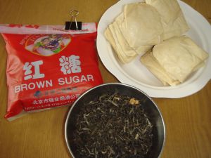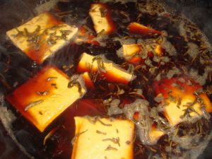 洗净锅,另做水,放入花茶、红糖和酱油,煮开之后放入焯过的豆腐干;
