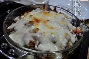 .烤箱预热,将格拉斯耐热玻璃锅放入烤箱中层,上下火180℃,15分钟左右,再移至上层加烤3-5分钟至焗饭表层的奶酪呈金黄色即可。这款耐热玻璃锅透明的锅身可帮助确认烹饪料理过程,当餐具使用也不逊色。