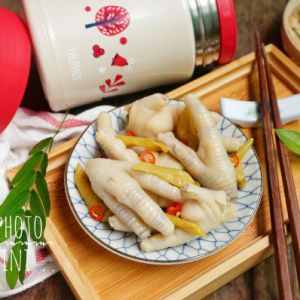 鸡爪沥干后,放入可密封的容器中,加入泡椒水和泡椒