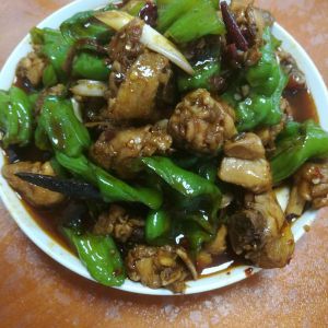 大火加入适量料酒、蒜、姜、加入青椒爆香。