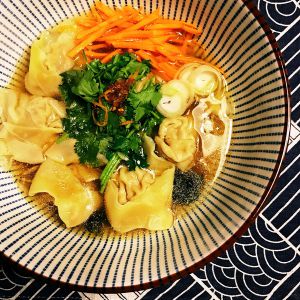 馄饨底料 生抽 鸡精 紫菜 香菇 葱 香菜 胡萝卜丝 辣椒油