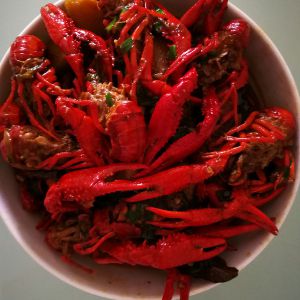 最后放入啤酒冒过虾子,加少许糖白糖提鲜,若不够啤酒可以加入少量清水,大火烧开,收汤过程大慨15分钟。剩余5分钟时放入紫苏叶,这样虾子很嫩。