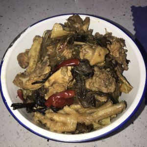 剁好的鸡肉洗净,凉水下锅焯水,水开后捞去血沫。盛出鸡肉沥干水分。