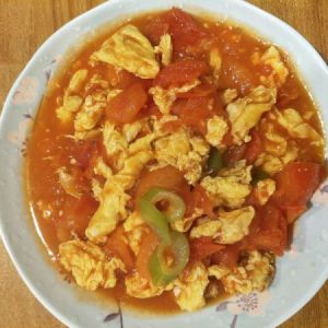 番茄炒制的差不多以后,倒入炒好的鸡蛋