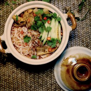 加上红烧牛肉 牛肉汤汁 多点儿 加上黄瓜丝 香菜段 就可以开动啦