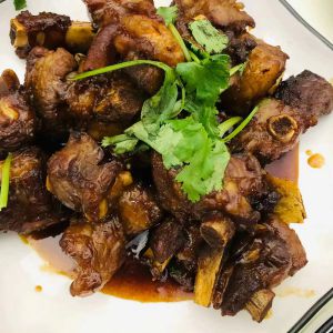 加入一勺料酒,两勺老抽,三勺生抽,四勺醋,四勺糖,调好汁。(忘拍糖了)