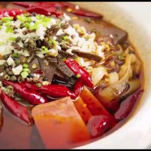 接着再下血旺,毛肚,肥肠,煮熟,勾薄芡连汤带料盛盘