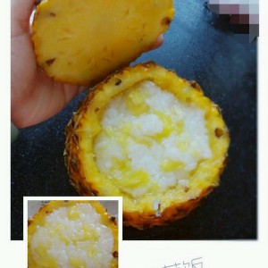 将糯米加水放锅蒸。半碗米就行,别加太多水,蒸十来分钟就好。之后将蒸好的糯米和菠萝肉拌一下放入菠萝壳中,盖上盖子并用牙签固定好。最后再放入锅中蒸十分钟