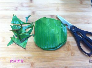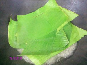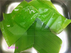 芭蕉叶剪开小块,洗净。