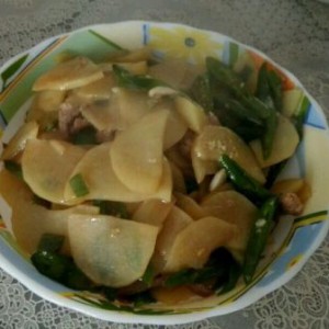 翻炒一会,加入土豆片翻炒