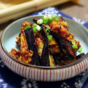 锅中加入适量的油,油热后将茄条依次放入锅中煎炸至表面微黄后盛出备用。