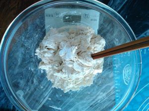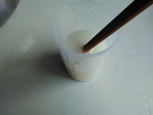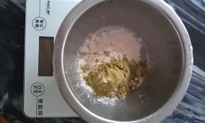 另取20克面粉和2克抹茶粉混合均匀后,倒进酵母水适量