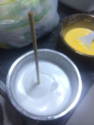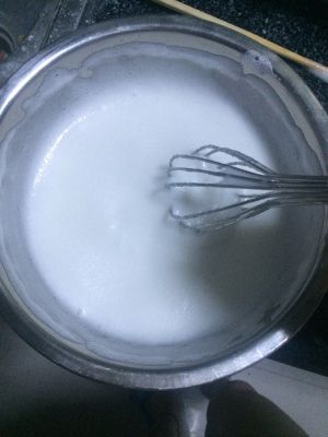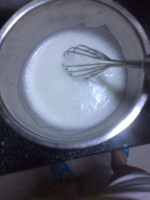 有此种泡沫出现滴时候再来25g左右滴白糖,继续~等变超小泡沫滴时候再放20g左右滴白糖,继续~