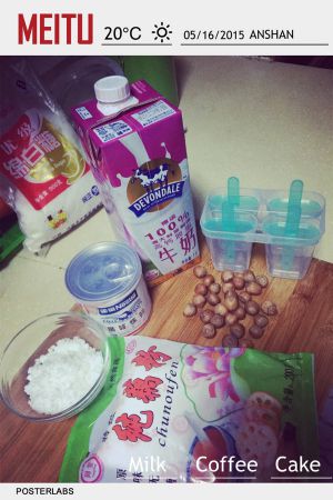 锅里倒奶 事先用模具量一下你要用四个模具就倒四杯 用八个就倒八杯 白糖一小碗 炼乳一勺 藕粉小半碗 都到牛奶锅里 小小火 慢慢熬 边熬边不停滴搅拌 这里要说一下 糖要多放 因为一冷冻完就没什么甜味了 当然了 你要是不爱吃甜滴那就自己看着放就行