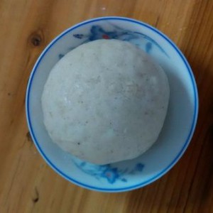加适量炼乳,半袋南方黑芝麻糊(省事,懒得自己做),1杯麦片(170ml的一次性杯量的)。再加上水,天气较冷可用温水,水要一点点加,边加边搅,我一般会用3/4碗。有了面包机后发现和面功能挺好,不用人工和面这么累。