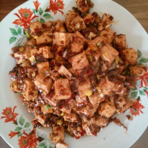 先将豆腐切块,入开水锅加盐煮三分钟。滤出,倒入适量食用油,将肉沫倒入锅内翻炒,铲出备用。再将花椒,红椒丝,蒜末倒入锅内翻炒,直到闻见香味,再将豆腐和肉沫倒入锅,炒一会。加盐,加番茄酱。继续翻炒,再加葱花出锅…!香喷喷的麻婆豆腐就可以上桌了。