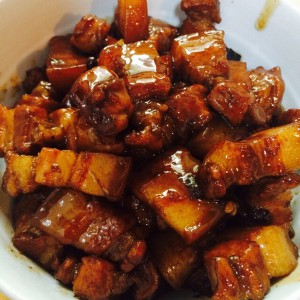 没来得及拍照。放肉煸炒至金黄色,然后烹少许料酒,煸炒二十秒左右放酱油炒上色,之后倒水