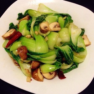 锅中放油,加入蒜末煸炒出香加入干辣椒炒然后放入香菇