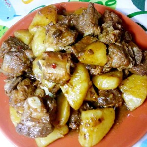 加入开水 沫过肉 依次加入盐 酱油 辣椒酱 盖上锅盖 中火焖直到水到达原来的1/4