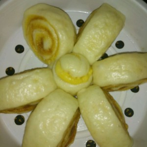 这个是用边边角角做的,里面有舍友的一个苹果馅儿的,一个花生糖馅儿的(╮(╯▽╰)╭宿舍正好还剩了一些越南花生糖她就掰碎了包进去了)