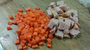 胡萝卜、玉米香肠切丁~