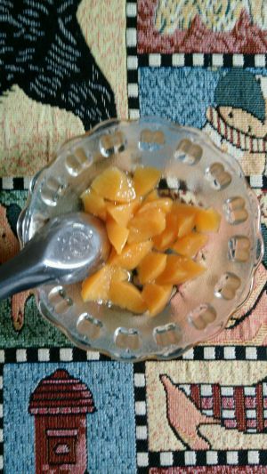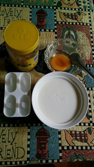 材料:自制酸奶、罐头黄桃、蜂蜜、冰棒模。