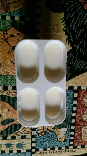 成品。注意从冰棒模中拿出时不能硬抽,从冷冻室拿出放一下或用手握住冰棒模升温,再抽出就比较轻松了。