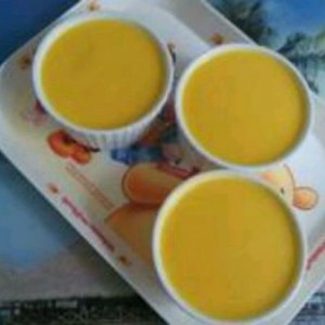 将芒果泥倒入稍冷却的牛奶中混合均匀,并用筛过滤二次。