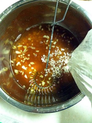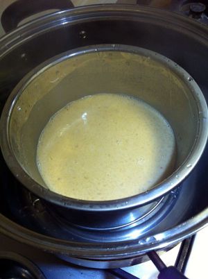 把搅拌好的马蹄液放入锅内开始蒸。