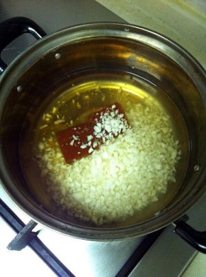 将片糖,马蹄碎放入锅加适量清水煮开,片糖煮溶即可。
