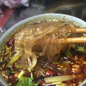 烧水,把粉煮熟,里面放一勺盐,这个过程中准备其他的东西,红薯粉还是比较耐煮的,而且不太糊锅