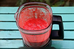 先挖点冰淇淋,再倒入果汁,就成这个样子