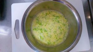 用筷子慢慢沿一个方向搅拌,使原料成面糊状